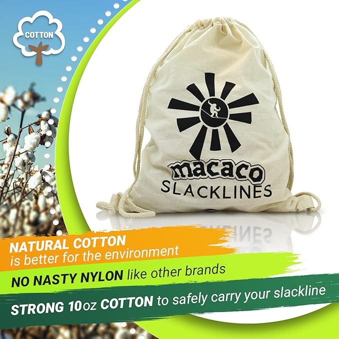 - Natural Cotton Carry Bag - All outside toys need a carry bag and ours are made from natural cotton which is better for the environment, outdoor fun and why macaco slacklines are used for forest school equipment.