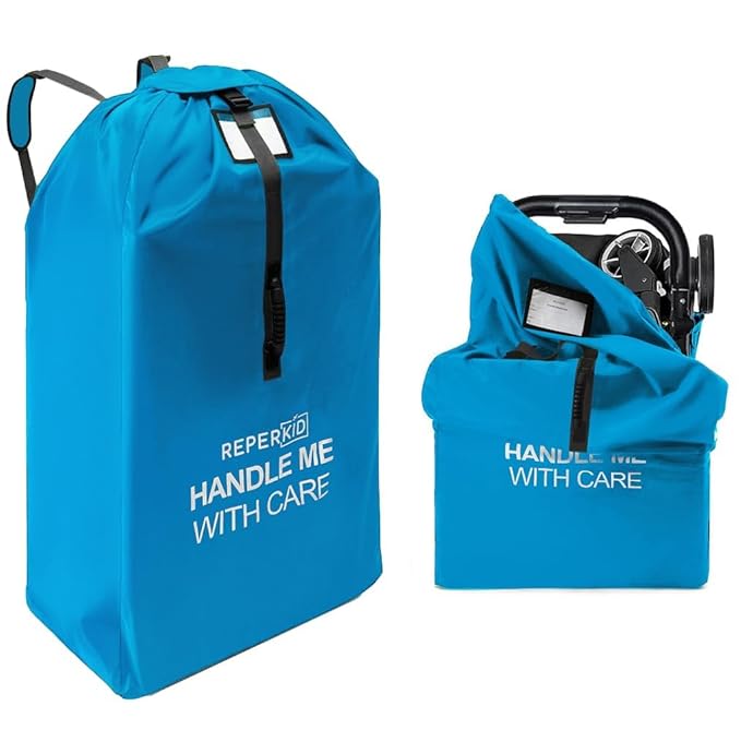 reperkid Large Stroller Bag for Airplane Travel, Blue, 47" H x 24" W x 15" D, Fits Most Large, Single, Double, Jogging Strollers – Premium Waterproof Cover, Adjustable Shoulder Straps