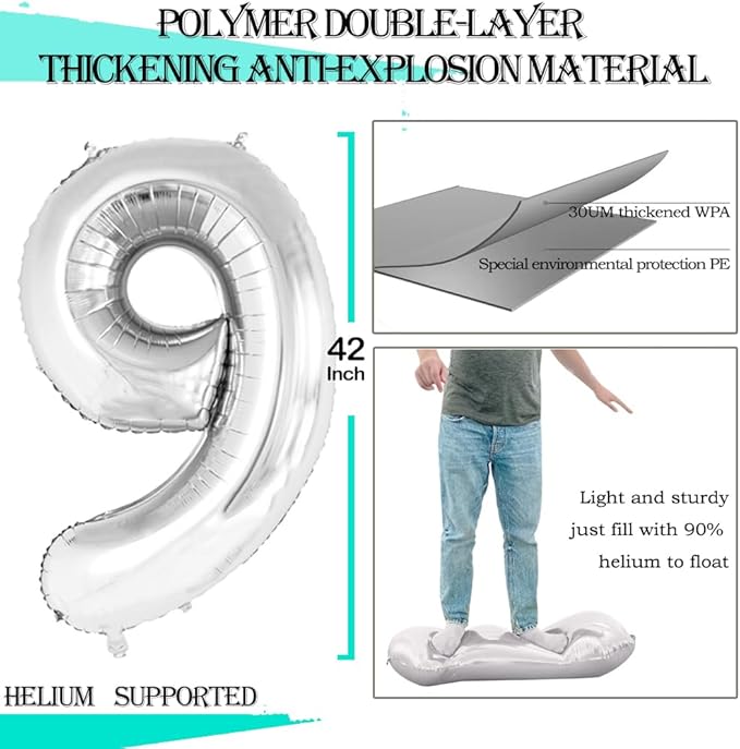 - Package Includes:Number 9 Balloons*3,42 inch,32 inch,16inch each,Straw*1