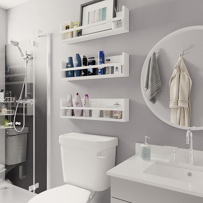 - Multiuse Shelf: Thanks to these storage shelves' wooden and simple design, you can use them not only in your kids room or nursery but also in different places. Mount them on your bathroom wall as a makeup organizer or your kitchen to store spice jars and display recipe books. you can use them not only in your kids room or nursery but also in different places. Mount them on your bathroom wall as makeup organizer or your kitchen to store spice jars and display recipe books.