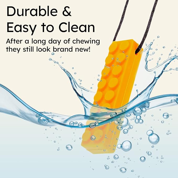 - Extra Bonus cord + Clasp Included – Each chew tool comes with a cord and breakaway clasp for safety purposes. Additionally, each pack of 3 comes with an additional cord and clasp in case one of the cords is accidentally broken. Cord and Clasp are not for chewing, children should be reminded to chew only on the Silicone brick
