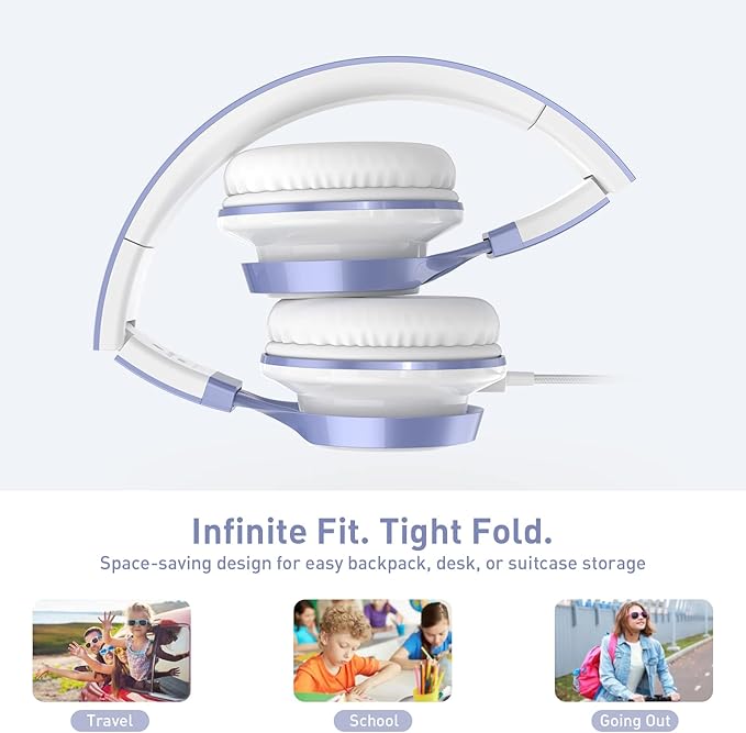- Lightweight and Foldable: At only 6 oz, these headphones are light and foldable, making them perfect for travel, school, and other on-the-go activities.