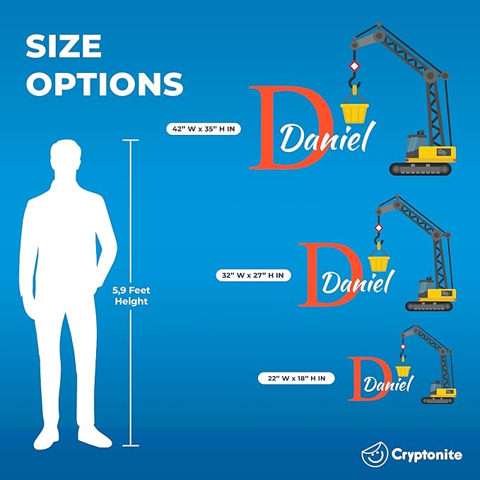 CRYPTONITE Custom Toddler Construction Crane Wall Decal I Personalized Name & Initial I Nursery Decor I Polyvinyl Chloride Sticker - Made in USA (Medium, Multicolor Options)