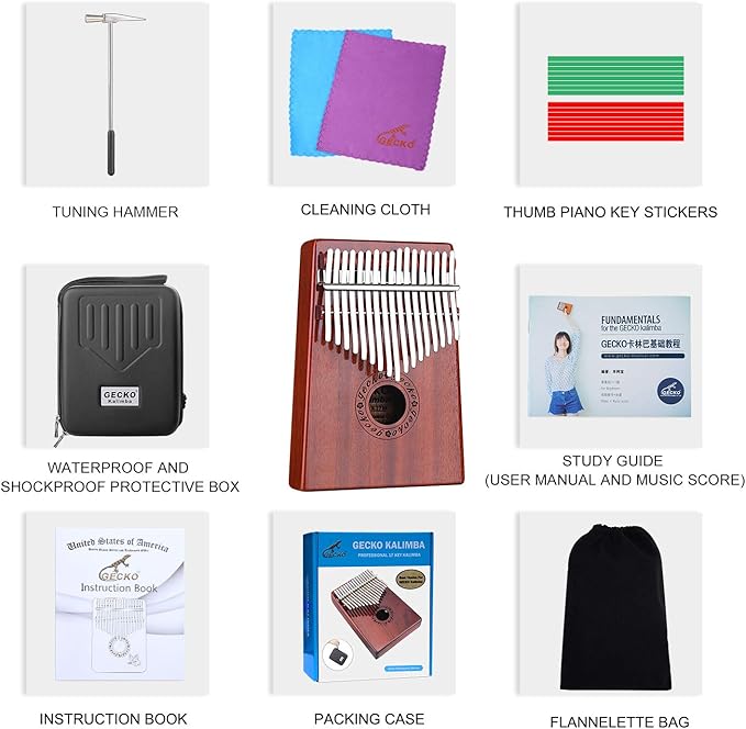 GECKO Kalimba 17 Keys Thumb Piano with Waterproof Protective Box, Tune Hammer and Study Instruction, Portable Mbira Sanza Finger Piano, Meditation Sound, Gift for Beginners and Professional