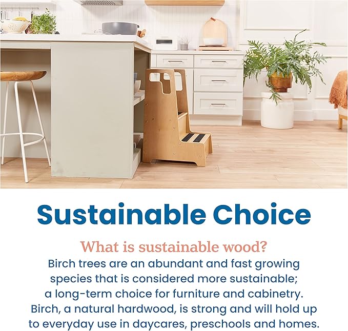 - Two-Step Stool: Countertop-height step stool designed for little helpers to grow confidence as they cook, wash hands, and brush teeth in a home, preschool, or daycare