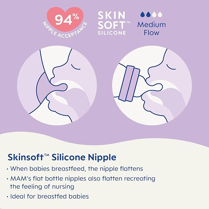 - 94% Nipple Acceptance: With a soft SkinSoft nipple, MAM baby bottles newborn are accepted by 94% of babies, making it easier to switch between breastfeeding and baby bottle feeding.