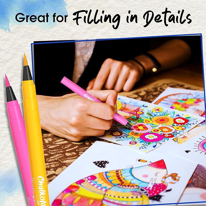 - For Artists Of All Ages - Use these watercolor markers for adults coloring books, sketching or bullet journals. Chalkola water color markers pens have nylon brush tip. Perfect for beginners & as water brush pens for watercolor.
