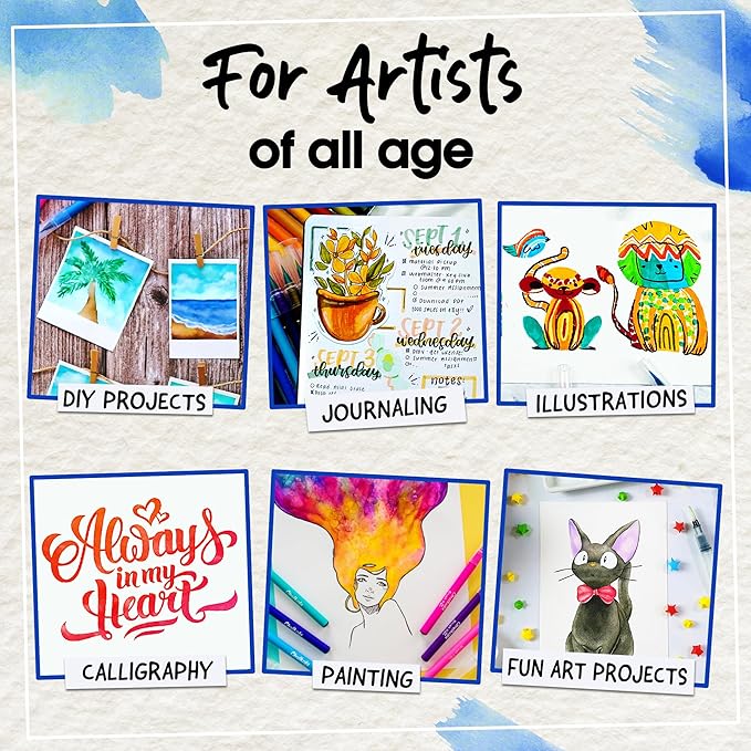 - Safe and Non Toxic - Our water color pens set are non-toxic, odorless, water based and washable. This watercolor brush pens set makes a complete gift for any occasion.