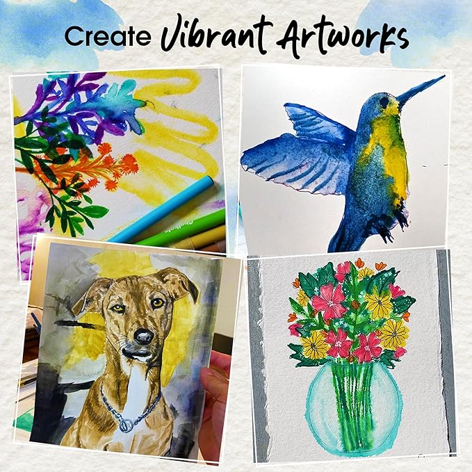 - Included Components : 15-sheet Drawing Pad, 28 Watercolor Pens, 2 Blending Markers, 15 Painting Pad Sheets