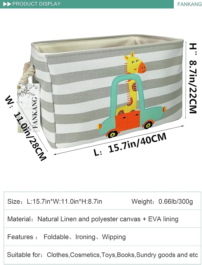 FANKANG Rectangular Laundry Basket Nursery Storage Fabric Storage Bin Storage Hamper,Gift Baskets(Giraffe)