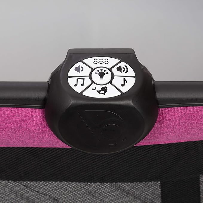 - Includes: Removable full bassinet, Changing table, Deluxe Parent Organizer, Large wheels with brakes, Travel/storage tote bag, Electronic music center with volume control, nightlight, and vibration