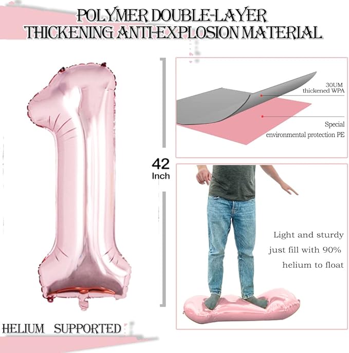 - Package Includes:Package Includes:Rose Gold number 1 and number 6 foil balloon,1 inflatable straw,315 inch ribbon,NO HELIUM COME WITH THESE BALLOONS
