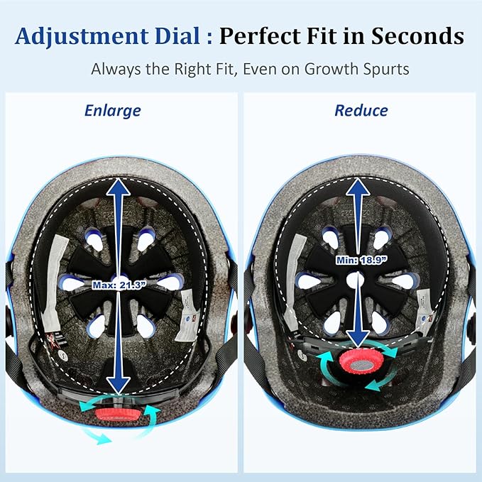 - 【Adjustable Kids Toddler Helmet Set 】- The helmet for kids has an adjustable knob in the back, can easily adjust to a perfect fit for kids, Helmet head circumference: 48-54 cm/18.9"-21.3", suitable for toddlers aged 3-5 and kids aged 5-8, one bike helmet set can be used for a few years