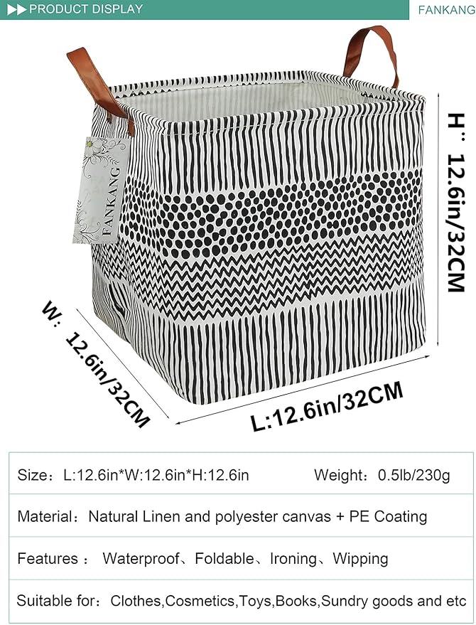 FANKANG Square Nursery Hamper Storage Bins Canvas Laundry Basket Foldable with Waterproof PE Coating Storage Baskets Gift Baskets for Children, Office, Bedroom, Clothes(Square-Black Lines )