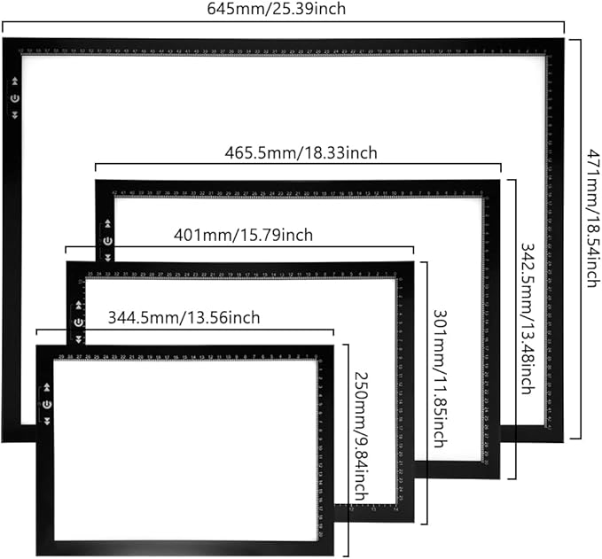 - Adjust Brightness -- ON/OFF, Dimmer Up and Down Button to Control the Brightness Simple than One Button, B4 Size Trace Light Pad Brightness Reach to 6000 Lux in the Surface