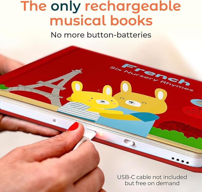 - Sized perfectly for small hands, our French Nursery Rhymes Sound Book is a must-have for music books for toddlers aged 1-3. With an easy on/off switch button and batteries included, it's a convenient and interactive choice for hours of educational play