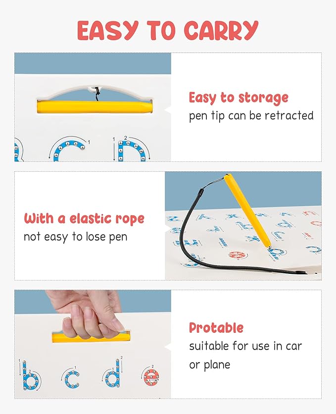 - Sturdy & Multi-faceted: All beads in solid plastic board, No small parts, good for your little kids. The stylus pen is tied to the board so not easy to lose.