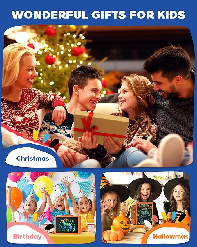 - PORTABLE AND DURABLE: The drawing board for kids is made of durable plastic, plus round corner design, anti-fall and anti-shock, no need to worry kids drop it. The drawing tablets for kids weights only 150 grams, easy to carry, place in school bags, handbags, travel bags. The doodle board also can be used in multiple places: airplane, car, restaurant, sofa, etc.