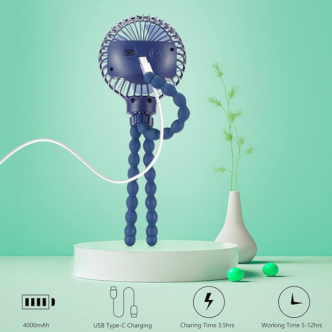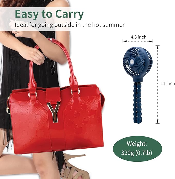 snawowo Mini Handheld Personal Portable Fan, Baby Stroller Fan, Car Seat USB or Battery Powered, with Flexible Tripod Clip on Student Bed Desk Bike Crib Treadmill Camping Traveling(Navy Blue)