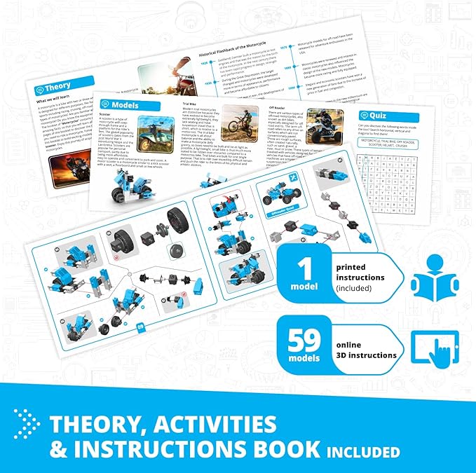 - BUILD 60 MOTORIZED MODELS: Formula 1 race car, trial bike, excavator & more powered by included 3V motor - ultimate engineering kit brings vehicles to life.