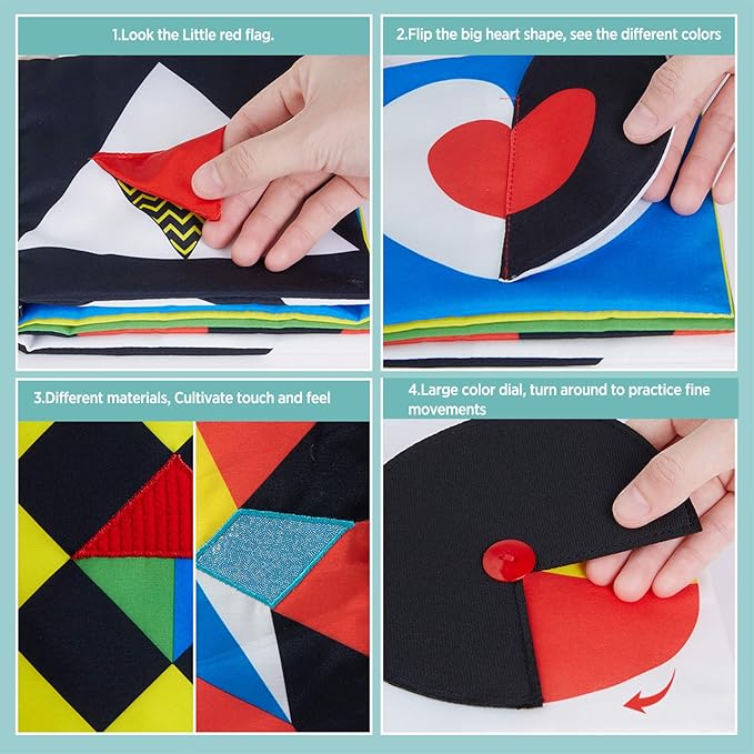 - Safe Materials for Your Baby's Health: Our baby touch and feel books from soft polyester. Non-toxic, strong stitching, hand washable, and absolutely safe for your baby. Also, each book has a handle on the side, easy for keeping on a stroller or baby fence. There also have different materials can cultivate baby's touch and feel.
