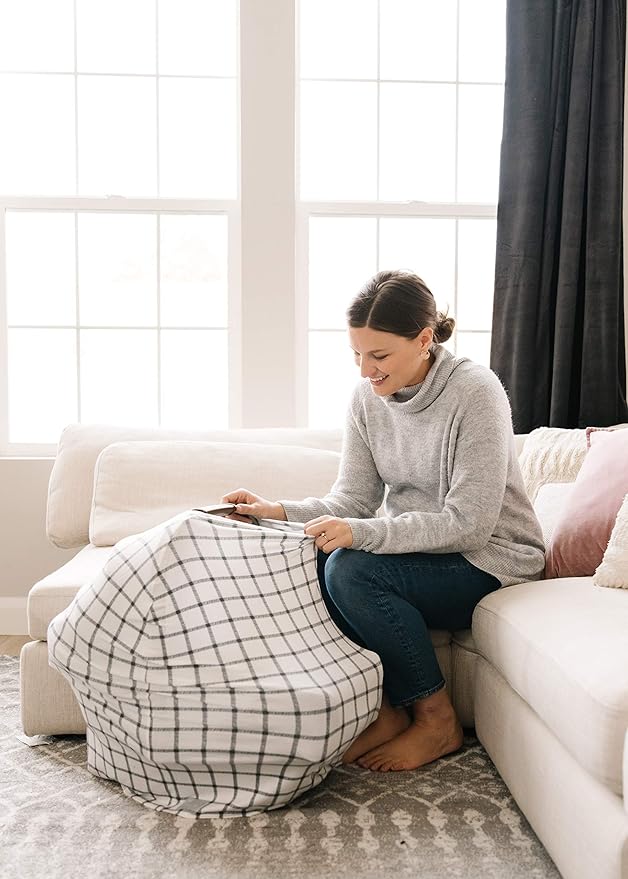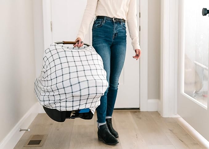 - 5-in-1 Cover. Baby Car Seat Cover. Nursing Cover. Shopping Cart Cover. High Chair Cover. Infinity Scarf. Stretchy fabric fits most car seats, shopping carts, and nursing mothers Navy Blue Stripe