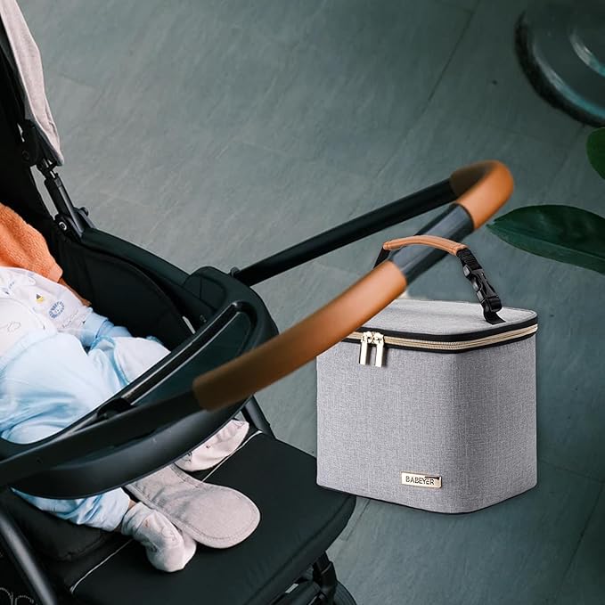 - High Quality:BABEYER Baby bottle bag is made of high Polyester dirt-proof fabric, durable smooth mental zipper. The lining of the cooler bottle bag are waterproof and wipeable for easy clean. The side pocket can put some useful items, like phones, keys and so on