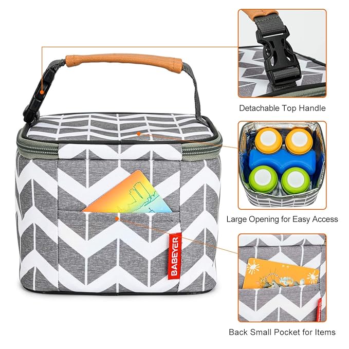 - High Quality:BABEYER Baby bottle bag is made of high Polyester dirt-proof fabric, durable smooth mental zipper. The lining of the cooler bottle bag are waterproof and wipeable for easy clean. The side pocket can put some useful items, like phones, keys and so on