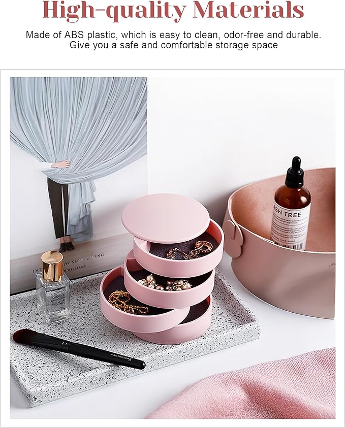 - ♥【High Quality Materials】- Made of premium ABS plastic, non-toxic, odor-free and durable. Internal soft non-woven fabric for preventing scratch and tarnish, give you a safe storage space to protect the jewelry.