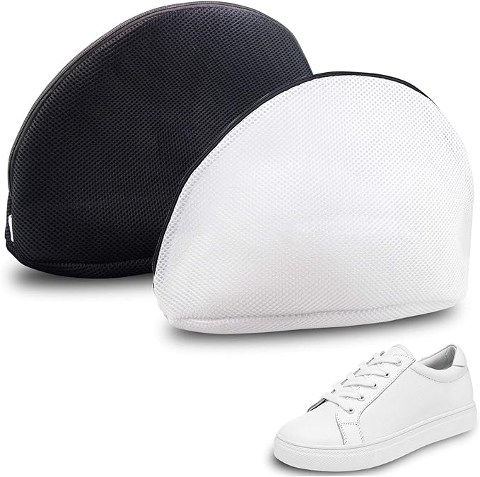 - You will receive two 10.23 x 10.23 x 16.53 in(25 x 25 x 41 cm) Laundry net Bags(one black, one white), which can wash at least one pair of shoes(Less than or equal to US size 15/EUR size 49) in each bag, washing shoes can also be done easily