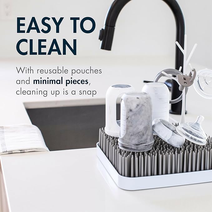 - Dishwasher Safe: With reusable pouches and minimal pieces, cleaning up (and getting ready for the next round) is a snap; the silicone material can also be safely boiled, sterilized, and frozen
