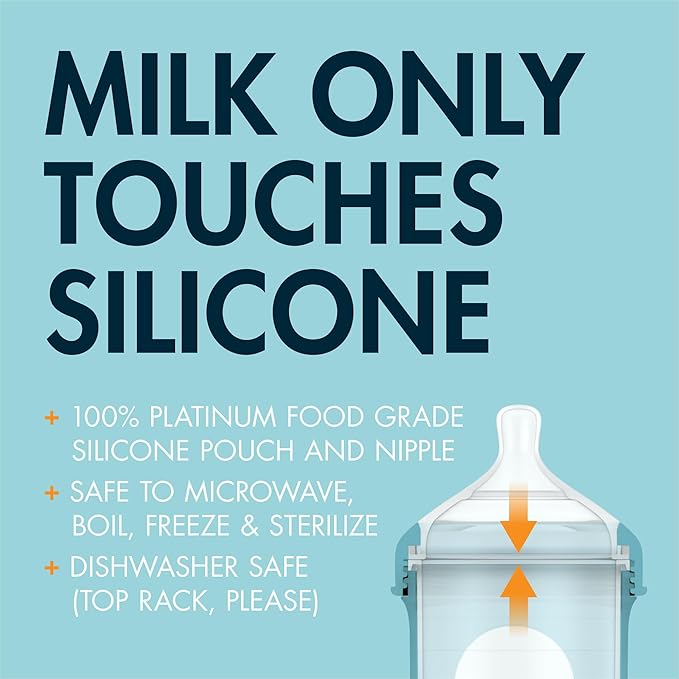 - Safety of Silicone: The only thing your baby's milk comes in contact with is the 100% food-safe silicone of the nipple and pouch; made without BPA or PVC