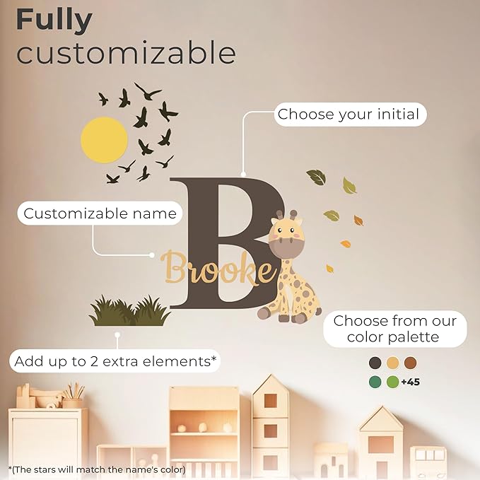CRYPTONITE Personalized Name Jungle Animals Vinyl Wall Decor I Nursery Wall Decal for Baby Boy & Girl Decoration I Stickers for Kids I Multiple Options for Customization (B. Giraffe)