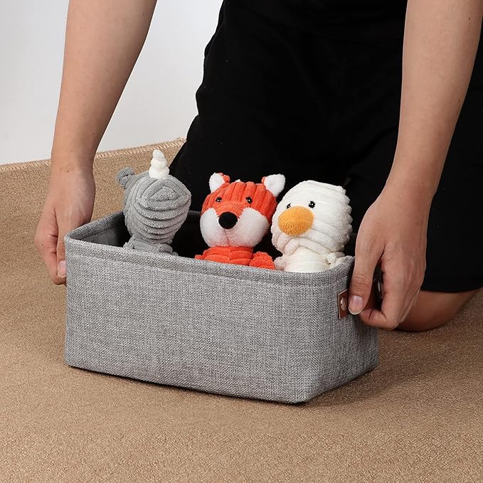 - 【Unique Design】Set of 6 small storage baskets, dimensions(each): 11.8(L) x 7.9(H) x 5.1(W) inches. Collapsible storage baskets bring you organizing convenience and a sweet home. Great for socks, underwear, books, magazines, toys, baby clothes, pet products, wipes, towels, decorations, office supplies, DVDs, and gifts.