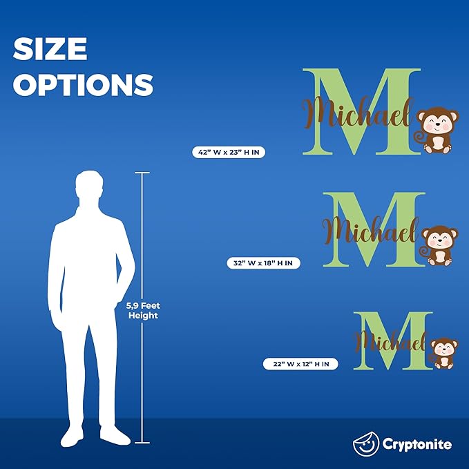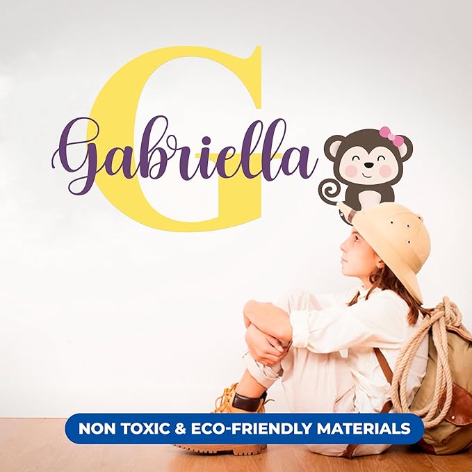 CRYPTONITE Personalized Name Jungle Animals Vinyl Wall Decor I Nursery Wall Decal for Baby Boy & Girl Decoration I Stickers for Kids I Multiple Options for Customization (D. Monkey)