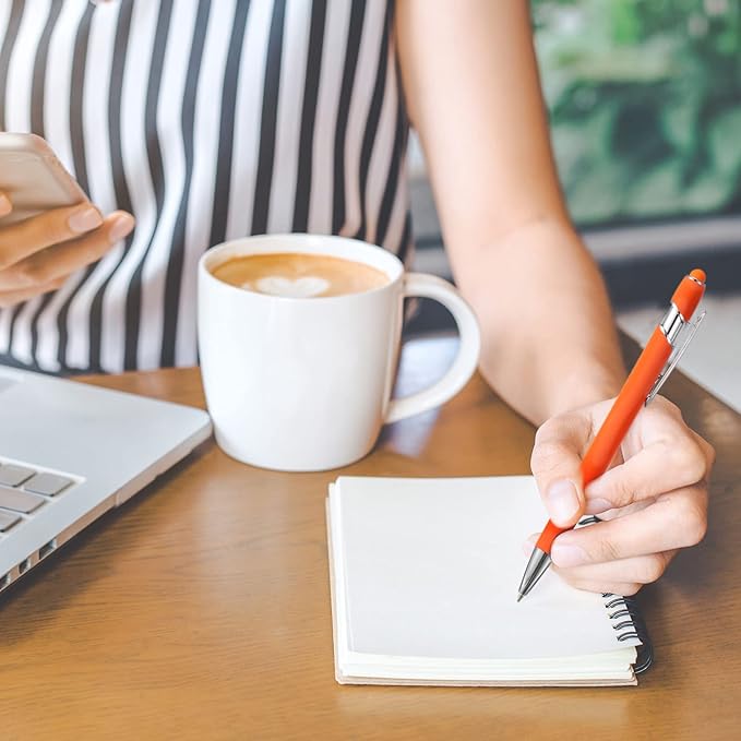 8 Pieces Ballpoint Pen with Stylus Tip Black Ink 2 in 1 Stylus Metal 1.0 mm Medium Point Smooth Pen Rainbow Colorful Rubberized Ballpoint for Touch Screen Tablet(Orange)