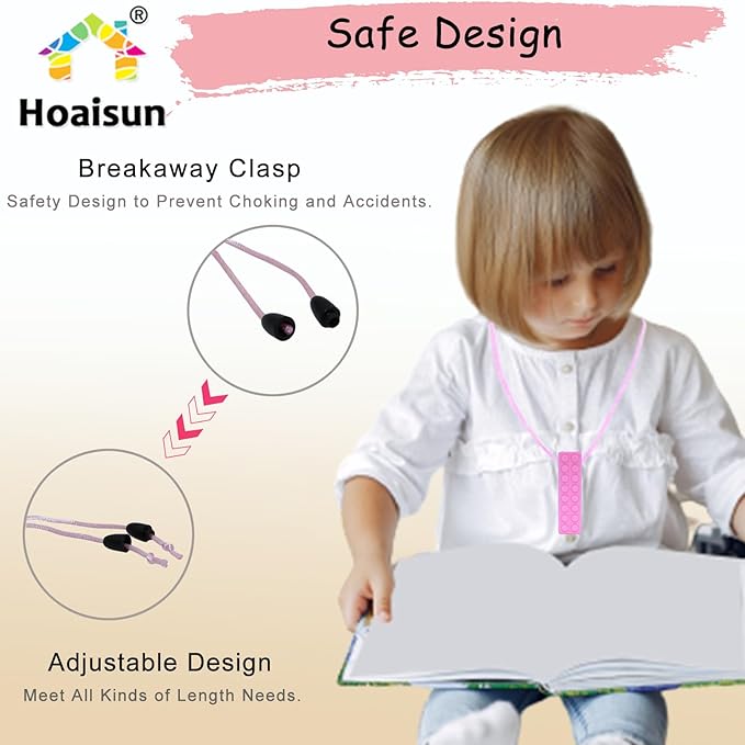 - Widely applications - Hoaisun teething neckalce for baby tocome in a variety of styles, can be used for any age. Autism adult chew necklace can be used as a stim toys, or as an oral motor therapy tools for kids with autism. And it is also a very suitable toddler chew necklace, which can relieve the baby's teething pain, which will not hurt your baby's teeth.