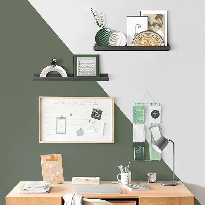 - 【Perfect solution for your walls】The picture ledge wall shelf is SAME SIZE as each other (L 23.1" x D 4.5" x H 2.2") and is such an easy way to display photos without making lots of holes in your walls. The wall shelves are crafted from Paulownia wood which are lightweight yet proportionately strong, sustainable real wood. They come fully assembled and all mounting hardware is included in the package.