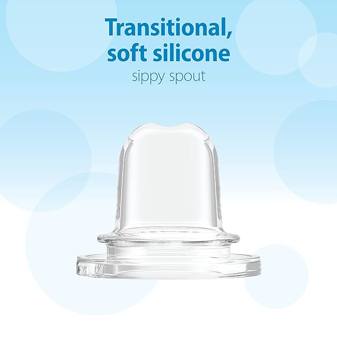 - BABY BOTTLE GIFT SET. As baby gets older, transition to sippy spout and easy grip silicone handles to teach new sippy skills. Store, transport and warm bottles with ease using the included storage/travel cap. Bottle brush included for easy cleaning.