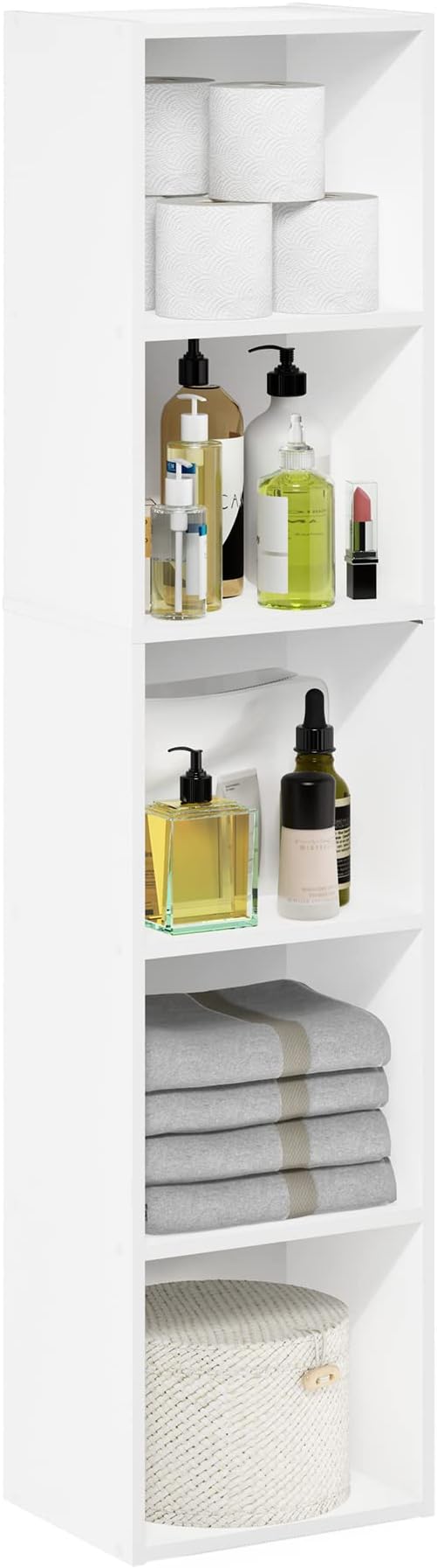 Furinno Luder Bookcase / Book / Storage, 5-Tier Cube, White