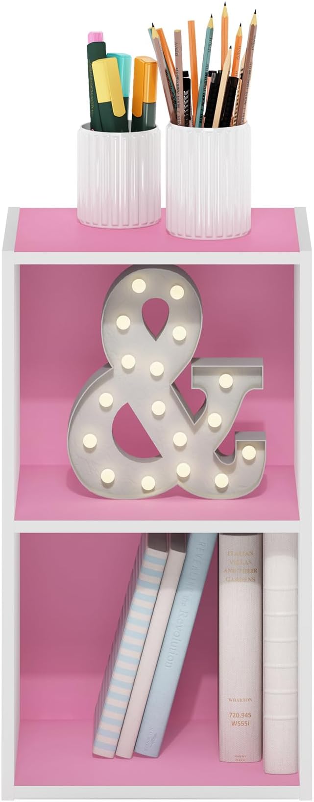 Furinno Luder Bookcase / Book / Storage, 2-Tier Cube, Pink/White