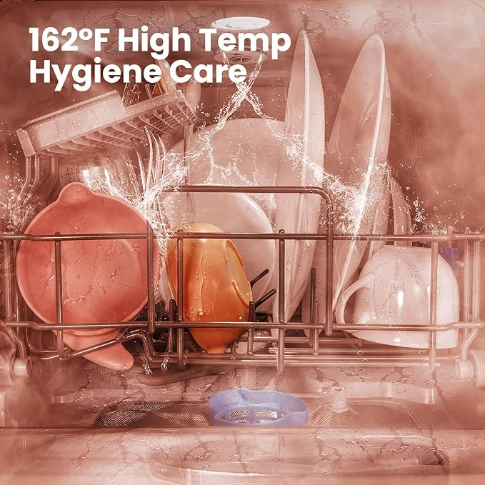 - [ 192 ℉ HIGH-TEMP HYGIENE ]: The HYGIENE wash cycle boosts water temperature to 162 ℉ Rinsing and Max to 192 ℉ which can tackle even the heaviest soiled dishes and is also suitable for cleaning baby bottles and children’s dinner sets.