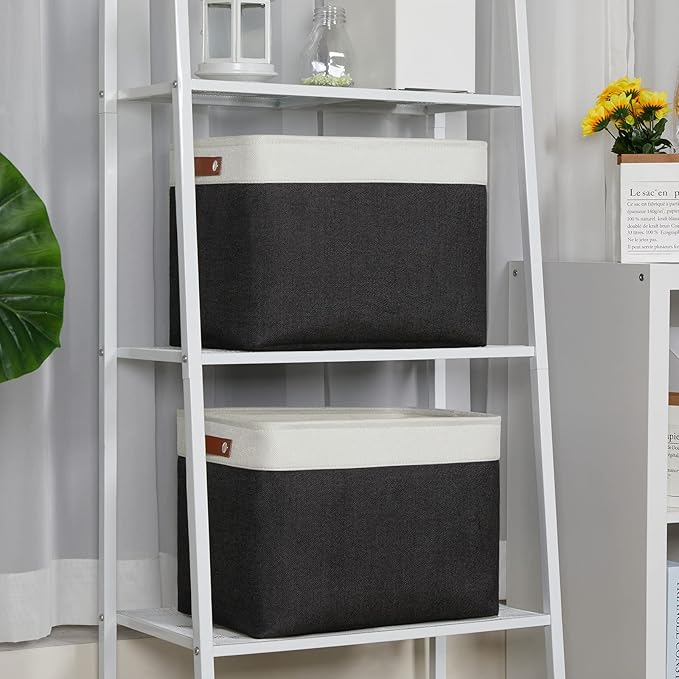 DULLEMELO Storage Bins Large-16"x12"x12" With Leather Handles for Organizing,Decorative Collapsible Storage Baskets for Shelves Closet Home Office (White&Black)