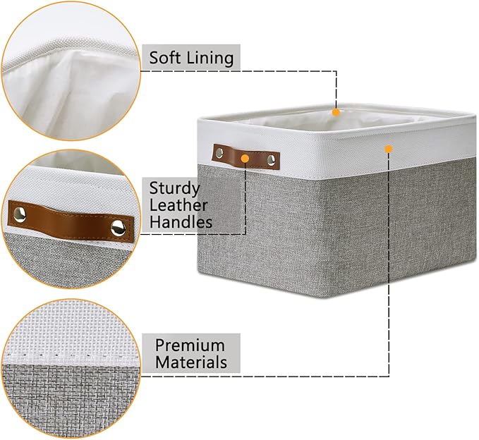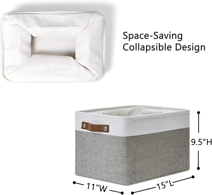 DULLEMELO Fabric Baskets for Storage, Office, Home,Nursery,Organizing Baskets for Shelves, Bedroom, Toys,Gift,Fabric Storage Basket with Handles(White&Grey,15"x11"x9.5",4-Pack)