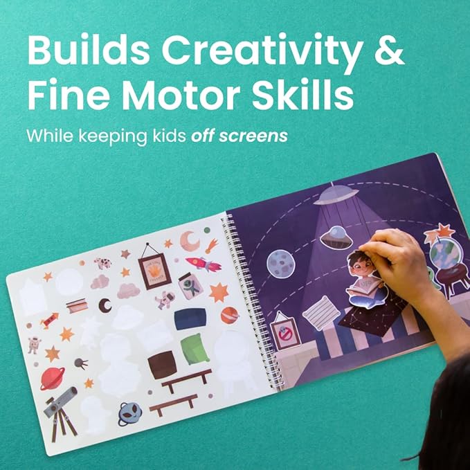 - On the go fun: Keep kids busy while traveling with independent, quiet, screen-free fun. Our lay-flat sticker activity books make the best plane travel essentials for toddlers, create the perfect mess-free crafts for car road trips with little ones, and keep kids entertained at restaurants. Leave the tablet at home and let their imaginations soar on your next family adventure.
