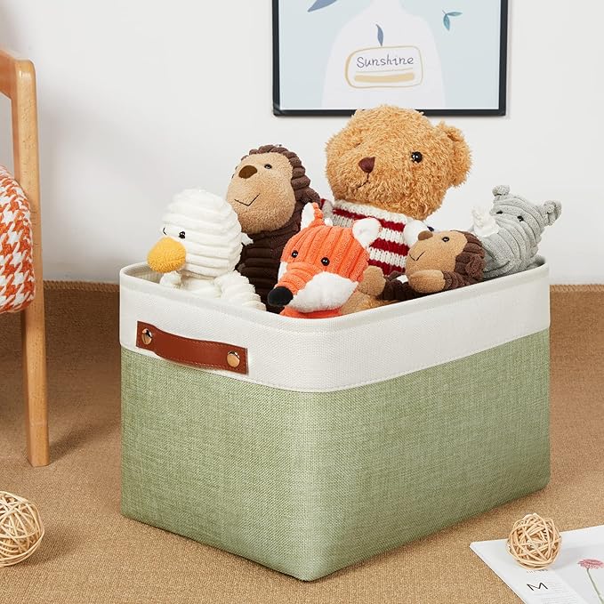 DULLEMELO Fabric Storage Bins for Laundry, Home, Foldable Storage Baskets for Shelves, Toys, Collapsible Storage Bins for Office,Bedroom(3-Pack Medium-15 inch X 11 inch X 9.5 inch , White&Green)