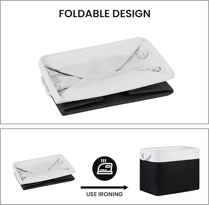 - [Foldable Baskets Set] Simply fold the canvas basket down flat for space-saving storage when not in use or when needing to transport. The basket stays filled for a while and then stays standing. If you mind the creases, you can use an iron to iron the creases in the basket. If you do not use an iron, the creases will slowly disappear as you store your items.