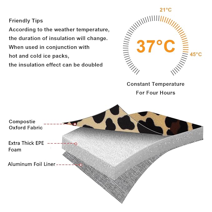 - HIGH QUALITY MATERIALS: Made of high quality water-resistant composite oxford fabric, 8mm extra-thick EPE foam and food-grade aluminum foil liner. No odor, non-toxic, food safe, durable, lightweight. Effectively keep bottles stay cold, warm or fresh for hours, it keeps breast milk fresh.