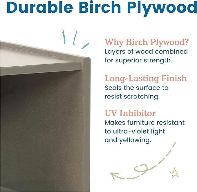 - Certified Safe: Kids book shelf is GREENGUARD [GOLD] Certified for low VOCs, TSCA, and CPSIA compliant; features rounded edges and smooth surfaces for safety