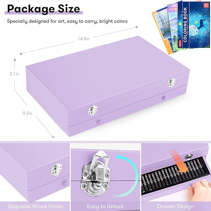- 【Safe Art Kits】Made with quality materials, this art drawing kit is safe and no harm for kids and adults. All of the crayons, pencils, markers and pastels in this art kit are safe and non-toxic, conforms to ASTM D4236. Safe art kits to use for any level of artist. Perfect kids art kit, art set, art supplies kits.